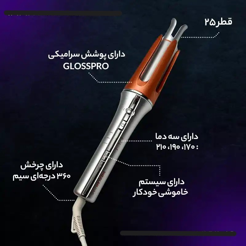 • روکش سرامیکی داره که باعث میشه حرارت مو رو نسوزونه و نرم و براق نگهش داره